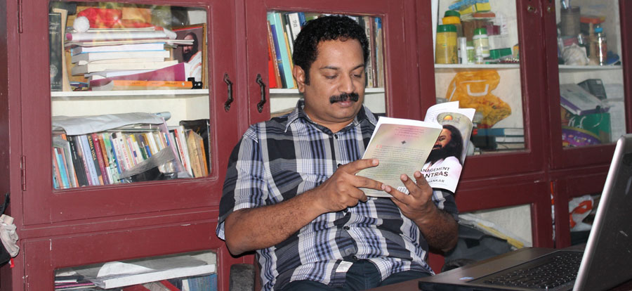 Introduction Sri Jayaprakash is a much sought-after teacher of The Art of Living. He is a DSN, Volunteer Training - Pre TTC, Part 1 and Prison Smart Trainer. He works relentlessly for a stress-free, violence-free society and has united thousands of people through the courses of The Art of Living. Early Life JP, as he is fondly called, was born into the renowned Palakkal Tharavad in Thiruvalathur, a picturesque village and abode of the Randumurthi Devi Temple situated on the banks of the river Sokanashini. He completed his Primary Education from the Thiruvalathur Lower Primary School and Secondary Education from the PMG Higher Secondary School, Palakkad. He began his University Education from the Government Victoria College, and completed his graduation in Botany from the Government College, Chittur. He has three post graduate degrees - one in Marketing & Finance, the second in Human Resources and the third in Applied Psychology. As an employee of Glaxo India Ltd he has worked at various locations in India. Into The Art of Living The Initiation In May 2002, JP was initiated into The Art of Living, when he did the Part 1 Course conducted by Sree Sajee Yousuf Nissan. This was the turning point in his life. In the year 2003, he did The Advanced Meditation Course at Munnar. In 2004, he did the Divya Samaj Nirman (DSN) Course conducted by Vinodji at Kannur The Ascent Soon after, JP became a Nav Chetna Shivir Teacher. In November 2004, he did the Teachers' Training Course (TTC) Phase 1 from The Art of Living International Ashram, Bangalore. In August 2005, he did Teachers' Training Course (TTC) Phase 2. On August 15, 2005, Gurudev Sri Sri Ravi Shankar bestowed upon him the Manuals of Part 1 and Prison Smart. In the Field Thereafter, JP started conducting Prison Smart Courses at various jails in Kerala, and thus became instrumental in transforming several lives. He has conducted classes for people from various fields and strata of society viz. Media Personnel, Police Officials, Tribals, Doctors, Paramedical Staff, VIPs, Bureaucrats, Technocrats, Business Managers, Politicians, Teachers, Students, and in Police Camps, Forest Department, Giants International group, YMCA, etc. He also became an Art Excel, Youth Empowerment Seminar (YES) and Youth Leadership Training Program (YLTP) Teacher. On September 10, 2012, he became a Pre-TTC Teacher. Guruji blessed him as DSN (Divya Samaj Nirman) teacher on 14th October 2013. He has organized Higher Courses like Part 2 and DSN for batches of 100+ participants. He has conducted Part 1 Courses for more than 15,000 people. Numero Uno For the last four consecutive years JP has been declared as the Number 1 Teacher of Part 1 Courses in Kerala, who has conducted courses for batches comprising of maximum number of participants. In 2012, he was recognized as the Number 1 Full Time Part 1 Teacher in India. Other Activities and Interest Psychology being one of his favorite subjects, JP derives immense satisfaction in counseling people with personal and inter-personal problems - free of charge. He is a voracious reader and has a huge collection of books, the concepts and contents of which he uses to drive home subtle and lofty ideas effectively in his classes. The Pied Piper JP is one of those few fortunate people who have realized their potential and thoroughly enjoy what they do. He is the most popular teacher of The Art of Living courses in Kerala, and people, especially those from the Palakkad district clamor for his classes. He is a teacher par excellence. He can have the participants of his courses doubled up with laughter and can also draw copious tears from their eyes. He has a soothing and sonorous voice which he modulates with expertise to suit each situation. Most participants absolutely love his classes; in fact he is the Pied Piper to several of his disciples who follow him to other venues to attend his classes. He has a magnetic personality and irresistible charisma. He epitomizes the Art of Living. |